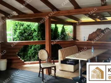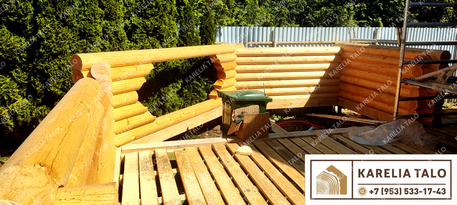Использование оцилиндрованного бревна обеспечивает высокое качество конструкций и эстетическую привлекательность, что делает такие беседки идеальными для дачных участков и частных домов.